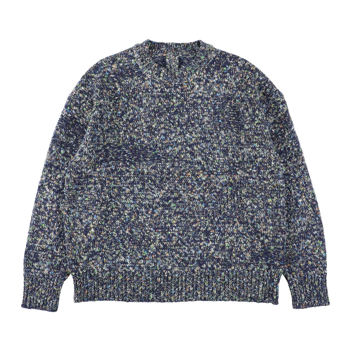 イタリア産のファンシーヤーンを使用して、部分的に柄編みを入れ